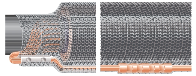 Moderne Kabelverlegetechniken erfordern einen robusten Außenmantelersatz, der den erhöhten mechanischen Belastungen beim Verlegen widersteht und die Lebensdaueranforderungen erfüllt. Der dickwandige Wärmeschrumpfschlauch ist innen mit einem Heißschmelzkleber beschichtet, so dass eine wirksame Feuchtigkeitsabdichtung und ein effektiver Korrosionsschutz für die Verbindungsmuffe sichergestellt ist. Nach der Installation entsprechen Schutzgrad und Dicke der Muffe den Werten moderner Kabel mit PVC- oder PE-Außenmantel. Für den Einsatz in Schächten ist eine platzsparende Alternative mit faserverstärkter Manschette erhältlich.
